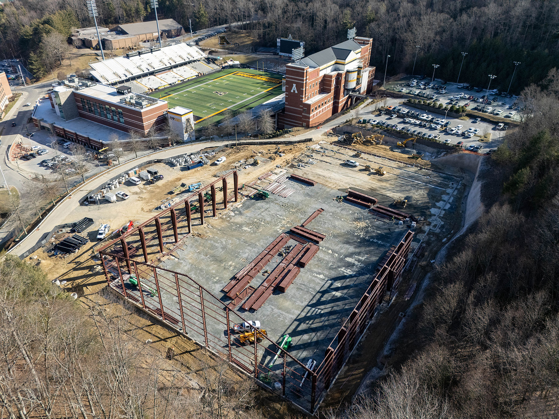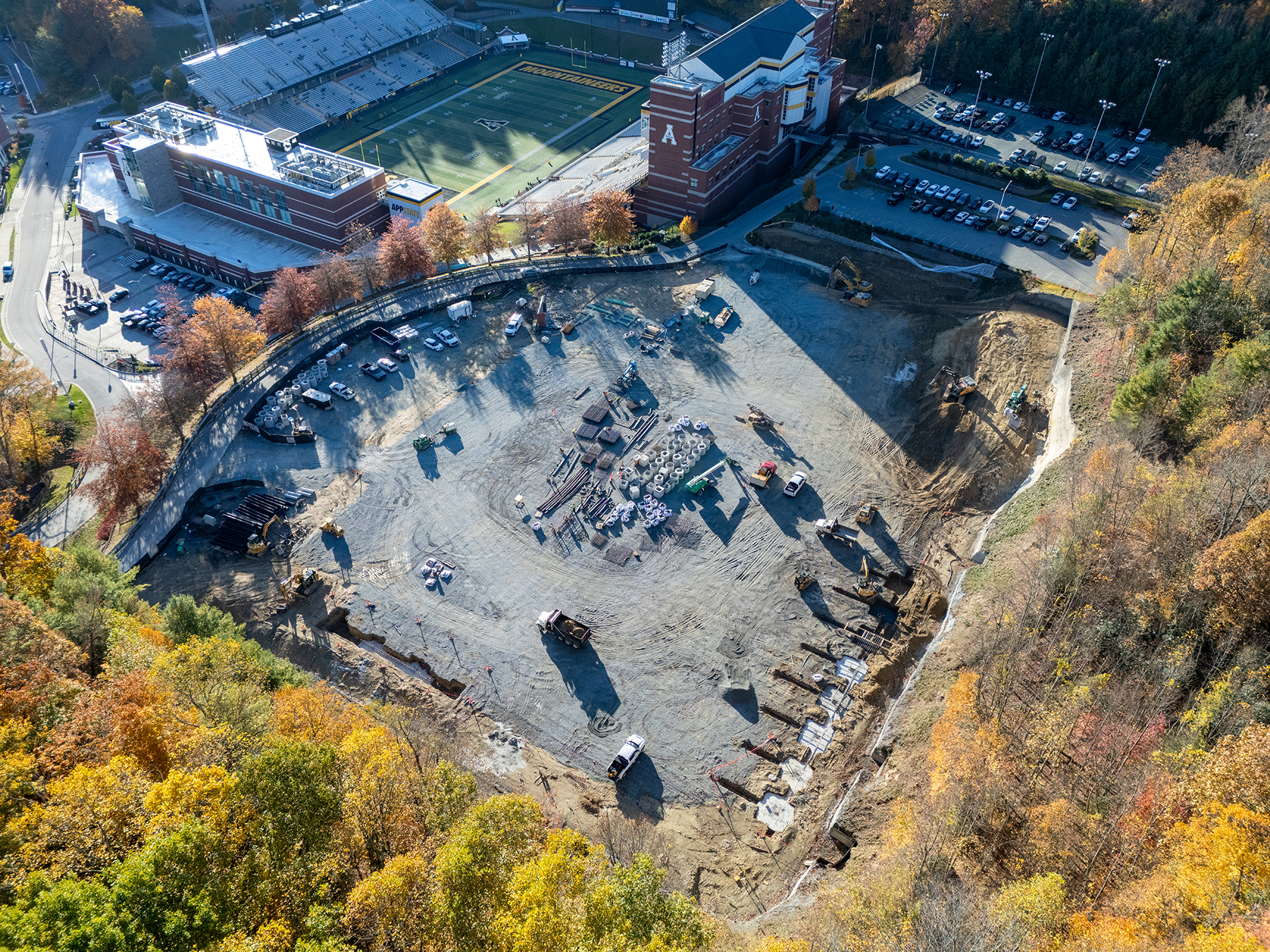 The new Sofield Family Indoor Practice Facility is one of several major construction projects underway at Appalachian State University to enhance the App State Experience.