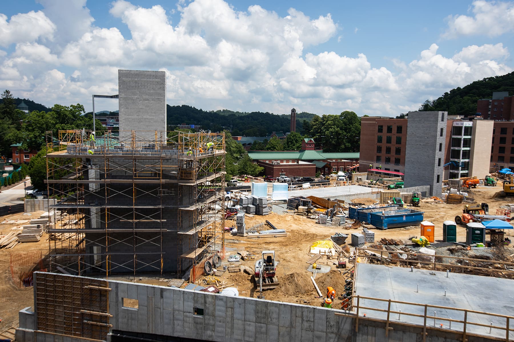 Pictured July 21, construction progress continues on New River Hall. Photo by Chase Reynolds